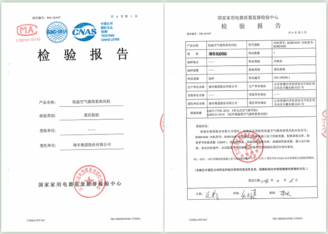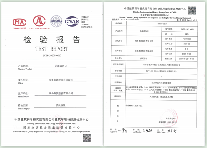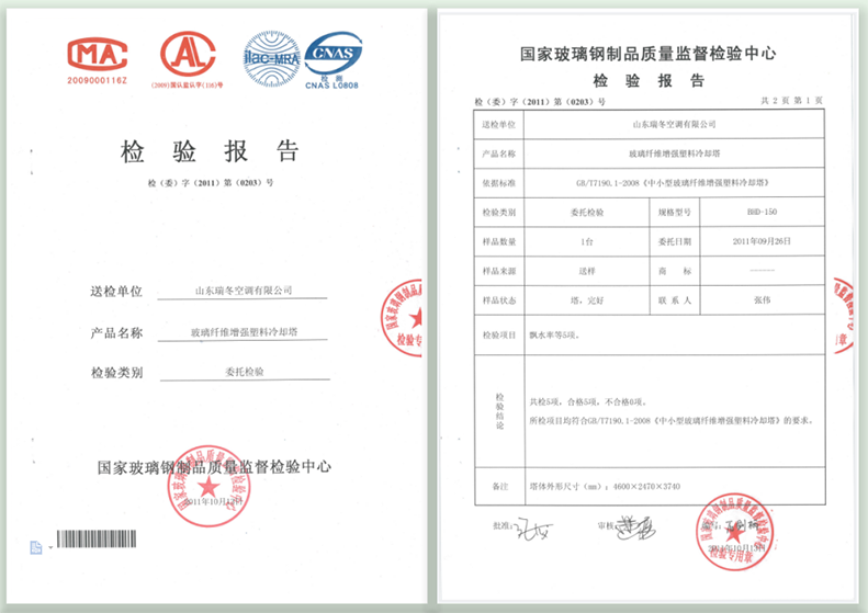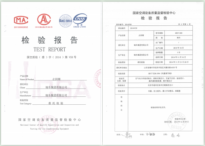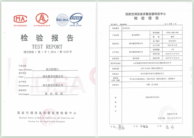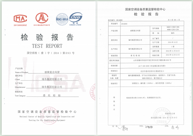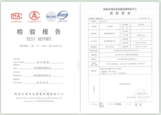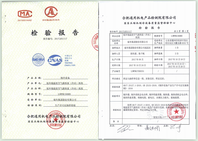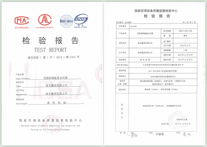 中国制冷空调行业试验装置评定合格证书