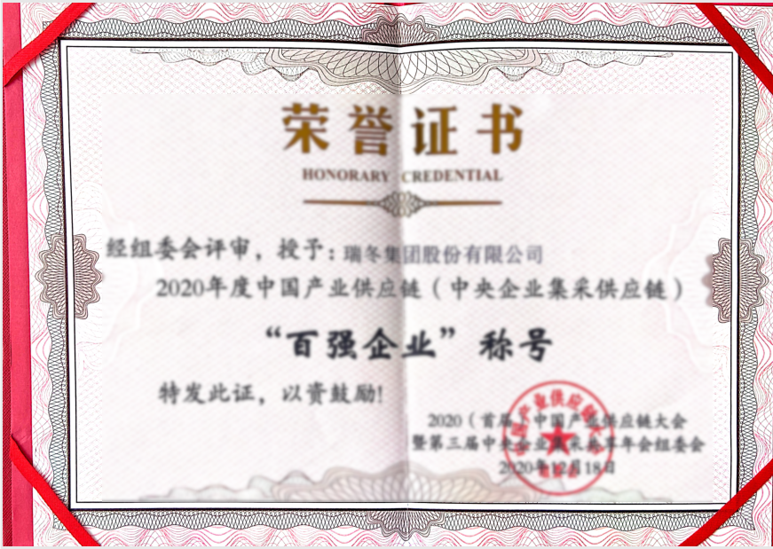 2020年度中国产业供应链(中央企业集采供应链)”百强企业”
