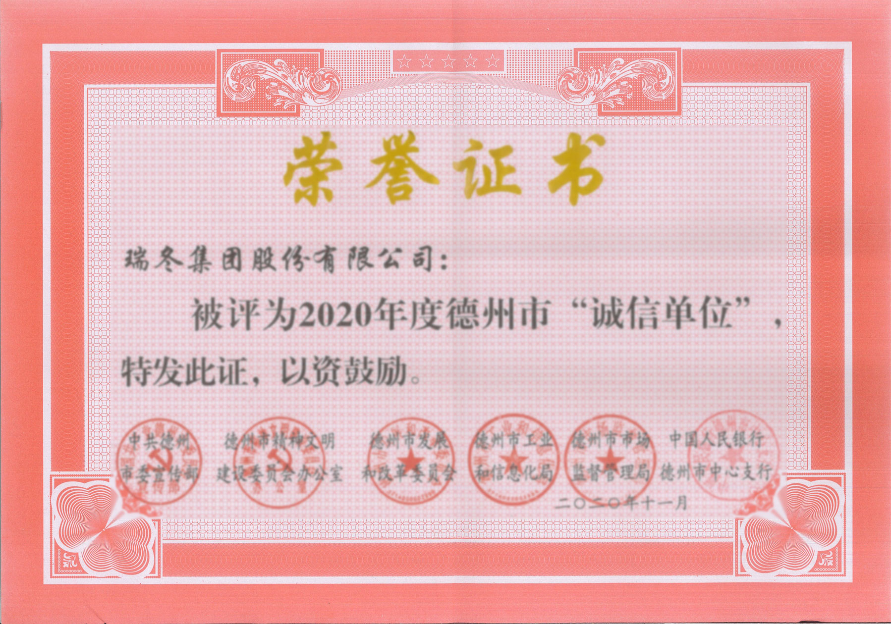 德州市诚信单位