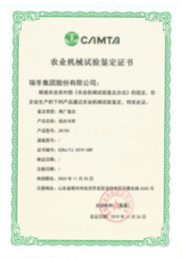 农业机械试验鉴定证书