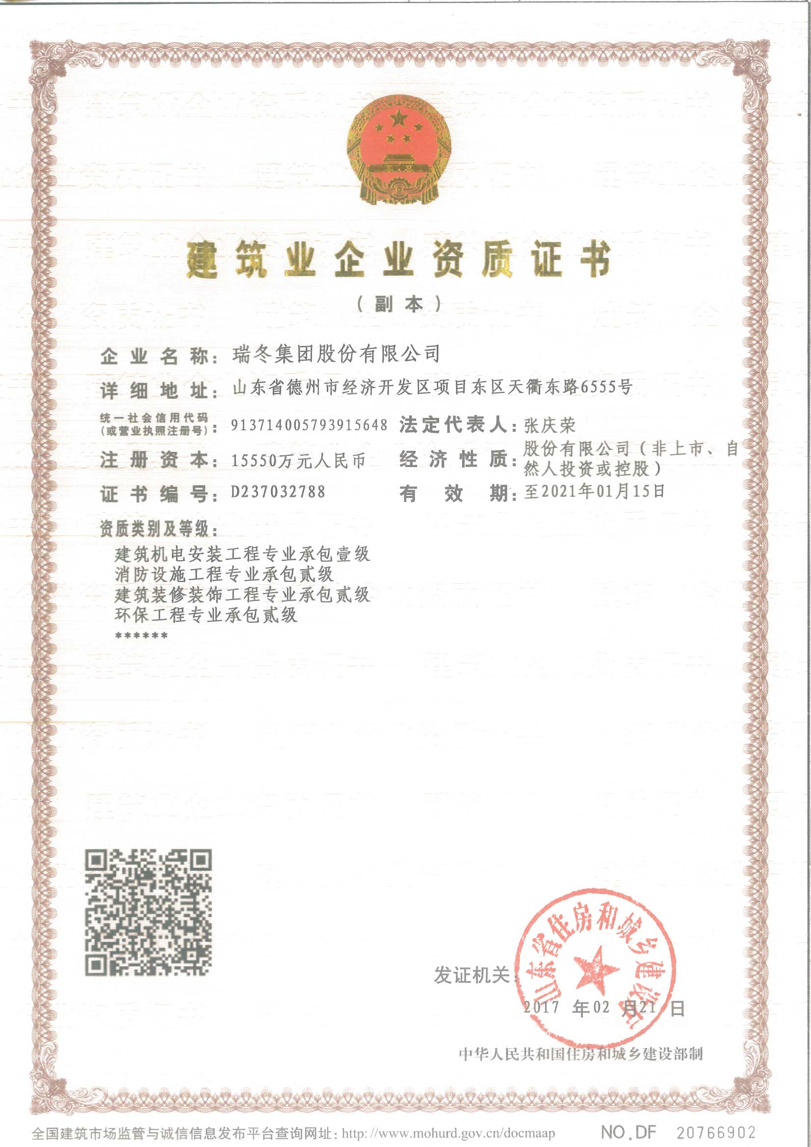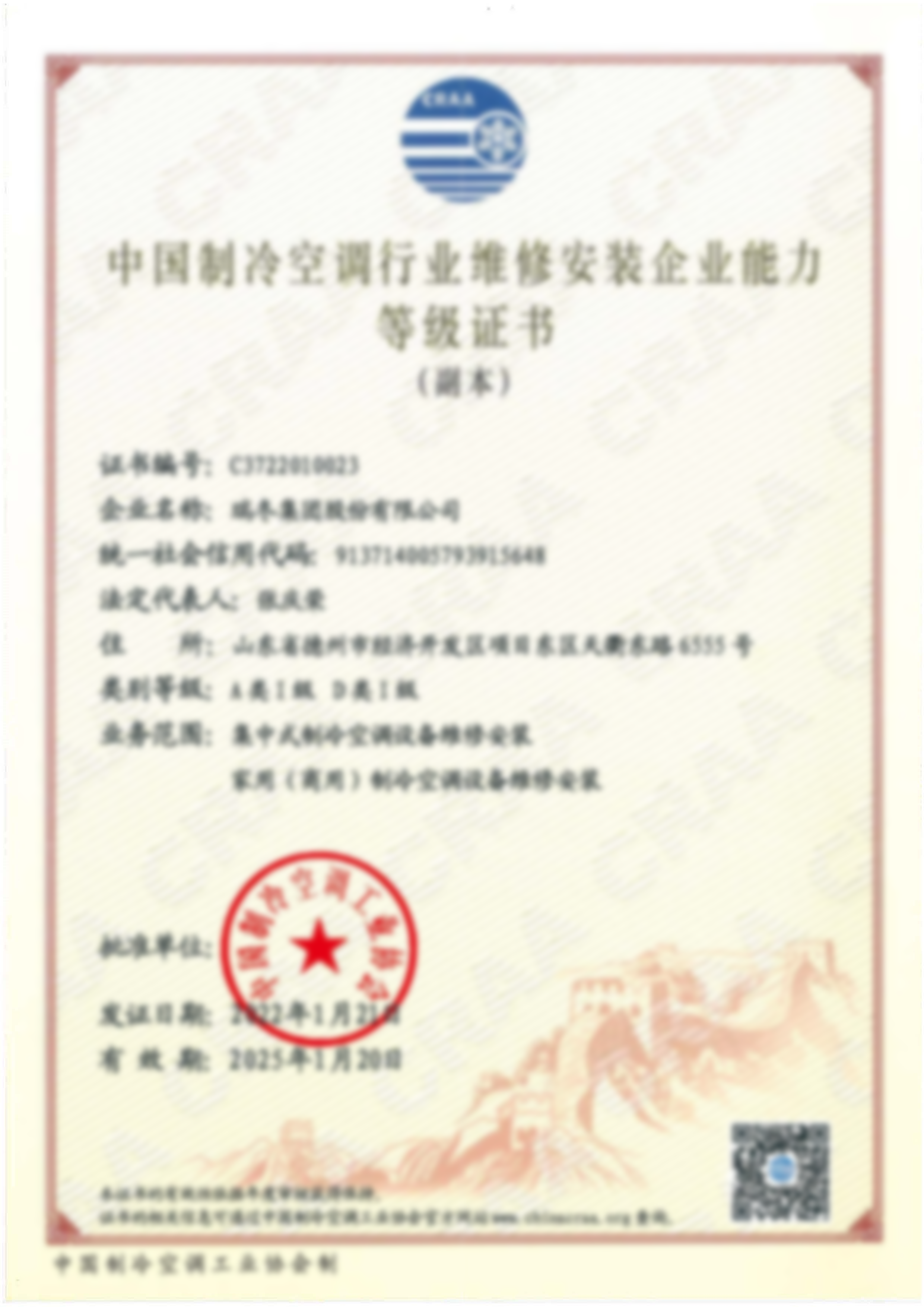 中国安装协会会员单位证书