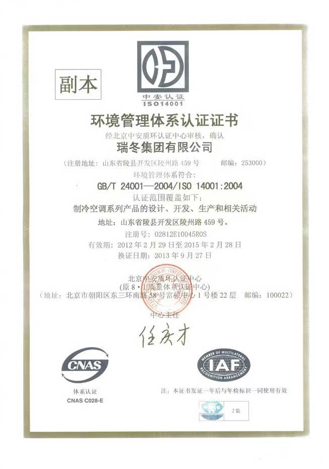 环境管理体系认证证书